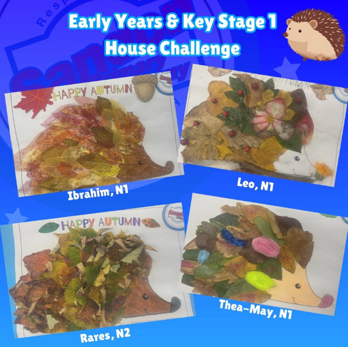 This week’s house challenge was handed over to our Early Years & Key Stage 1 students where we asked them to colour, paint or collage an Autumn hedgehog! 🦔