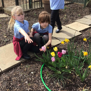 Our year 3 students took advantage of the good weather yesterday and took their Science lesson outdoors to our wildflower garden!